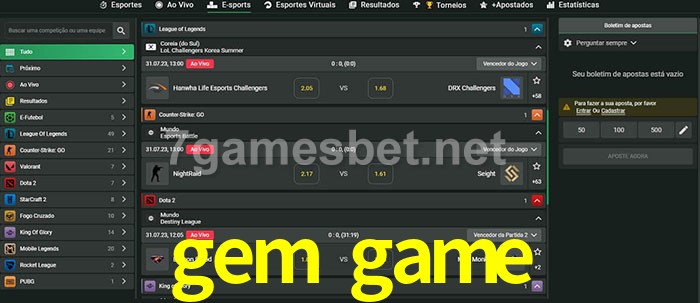 O gem game oferece uma grande seleção de opções de apostas em e-sports com probabilidades competitivas